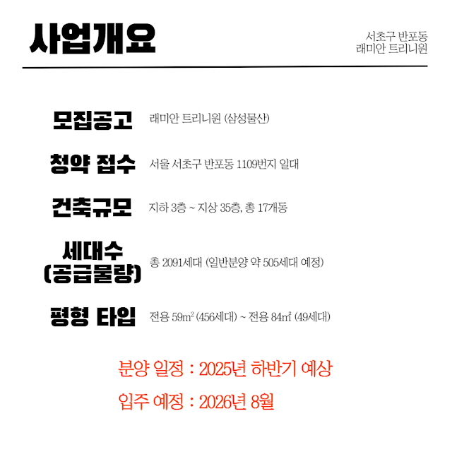 이번 포스팅은 서울 서초구 반포동 '래미안 트리니원'입니다.