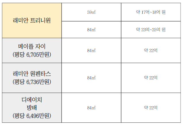삼성물산의 프리미엄 브랜드 ‘래미안’이 2025년 선보이는 핵심 단지로, 분양일정부터 예상 시세차익등의 핵심정보를 래미안 트리니원의 주변 유사 단지의 자료를 기반으로 분석해보았습니다.