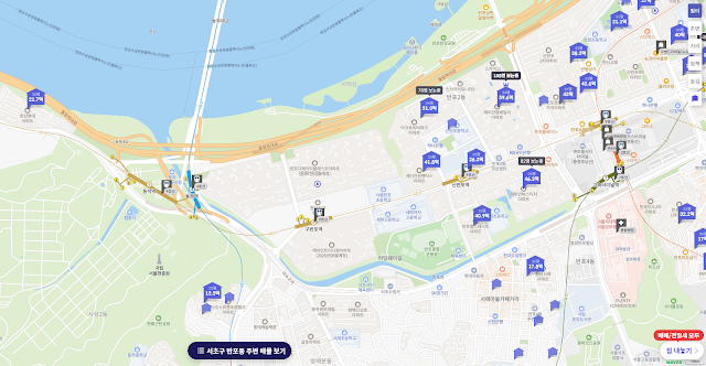- 편의시설: 뉴코아백화점, 고속터미널, 신세계백화점, 한강공원