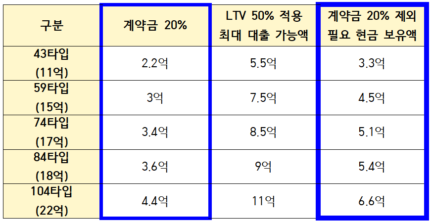 2025년 12월까지 분양가의 50~60%의 현금은 쥐고 계셔야 합니다.