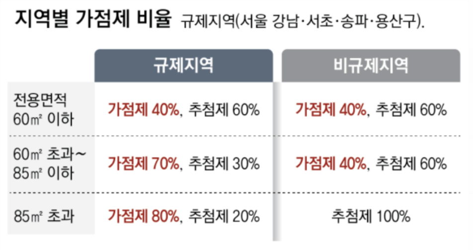 규제지역은 면적에 따라 가점제, 추첨제 %가 달라집니다.