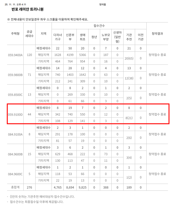 → 즉, 전체 지원자 중에서 공급물량의 6배수 안에 들어야 예비 당첨 가능성이 높다는 뜻이죠.
