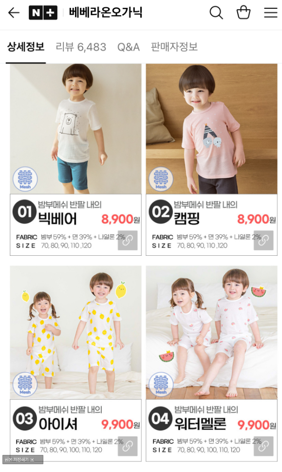 봄여름 아기내복 5+1 행사해서 저렴해용~