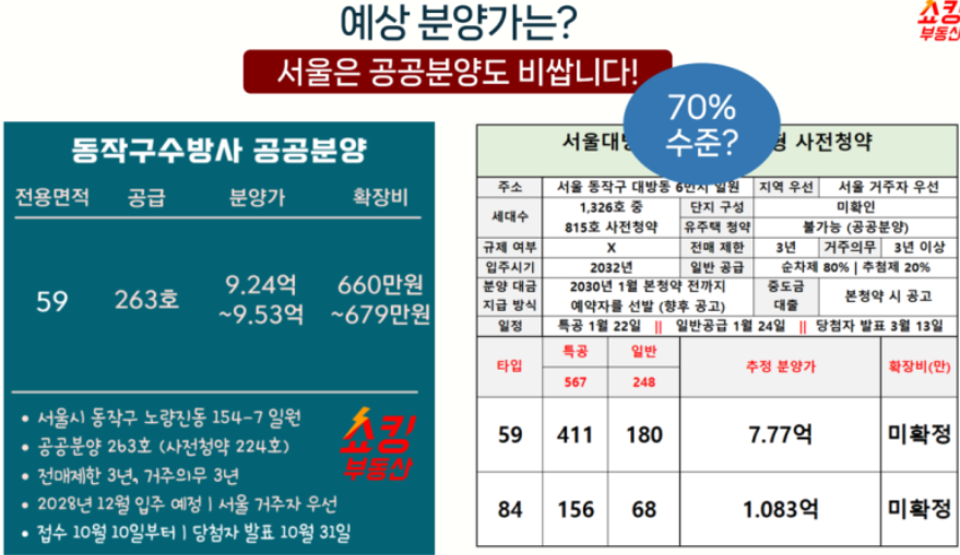 수방사 공공분양도 무려 9.5억의 분양가로 공급 됬었습니다...