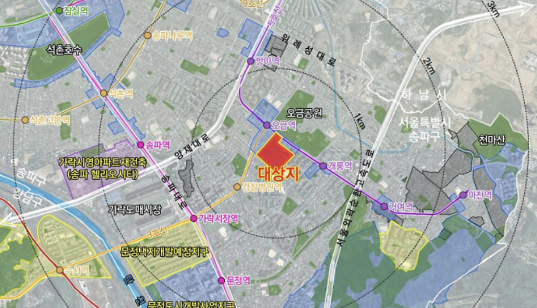 - 교통: 3호선 경찰병원역, 8호선 가락시장역, 위례선(예정)