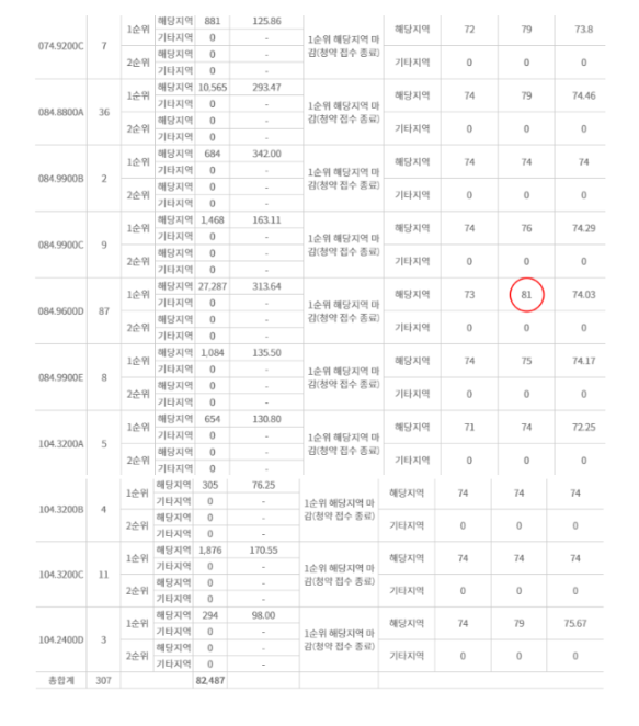 | 84㎡ 일반 1순위 경쟁률 | 최고 31:1 |