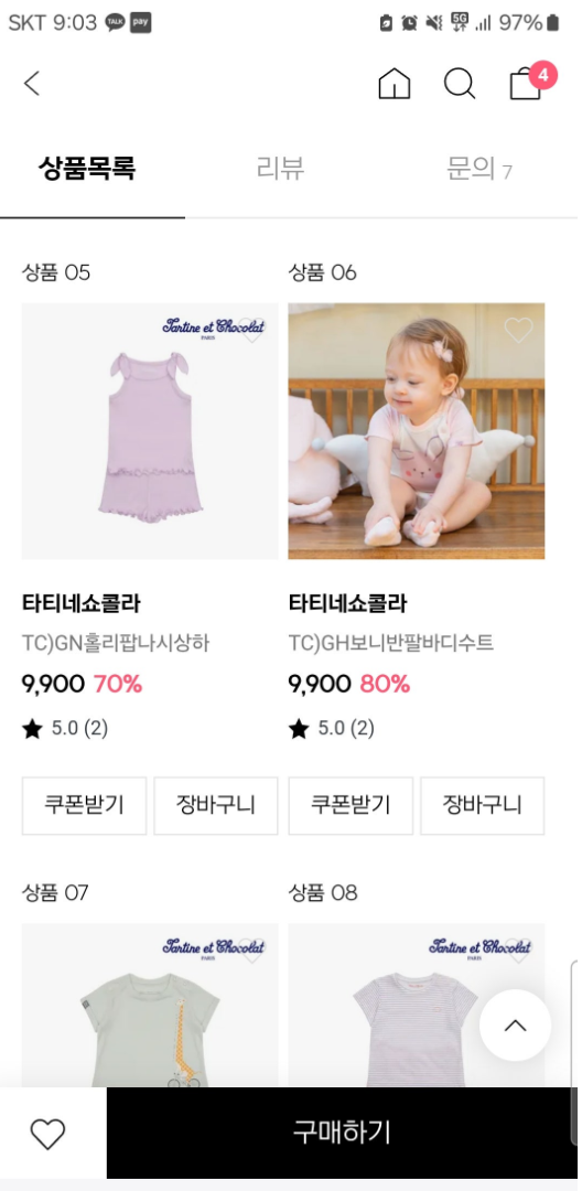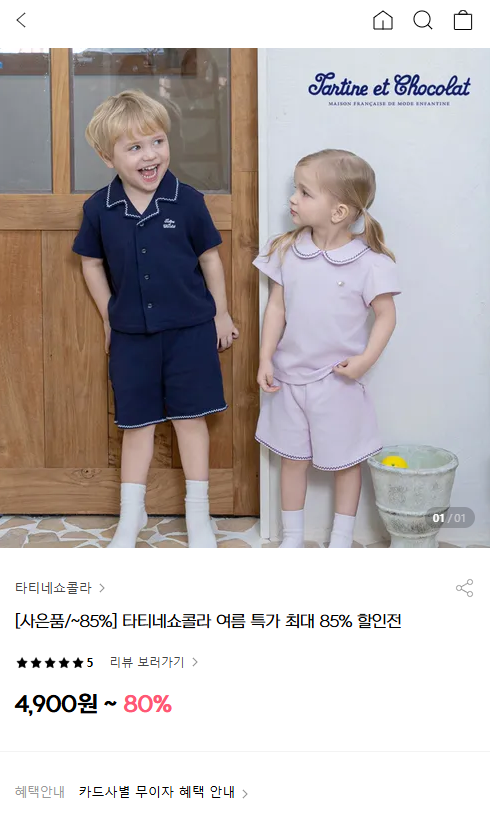 [핫딜] 핫딜🔥🔥🔥 보리보리 타티네쇼콜라🔥 반팔 바디수트 9,900원