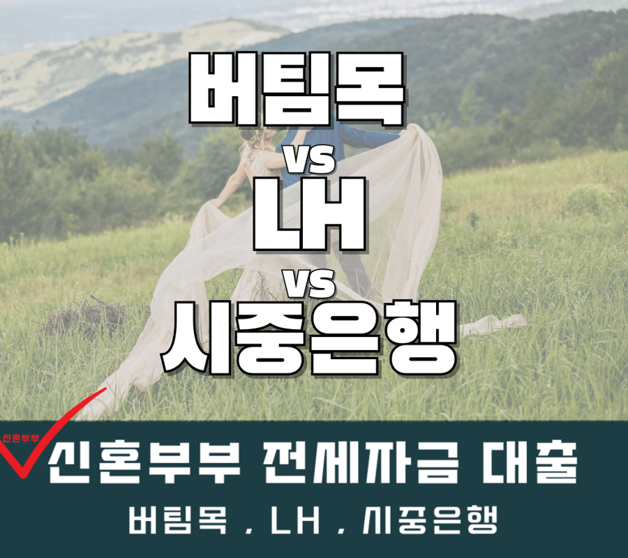 신혼부부를 위한 전세자금 대출은 대표적으로 버팀목 전세자금 대출, LH 전세임대, 시중은행 전세대출로 나눌 수 있습니다.